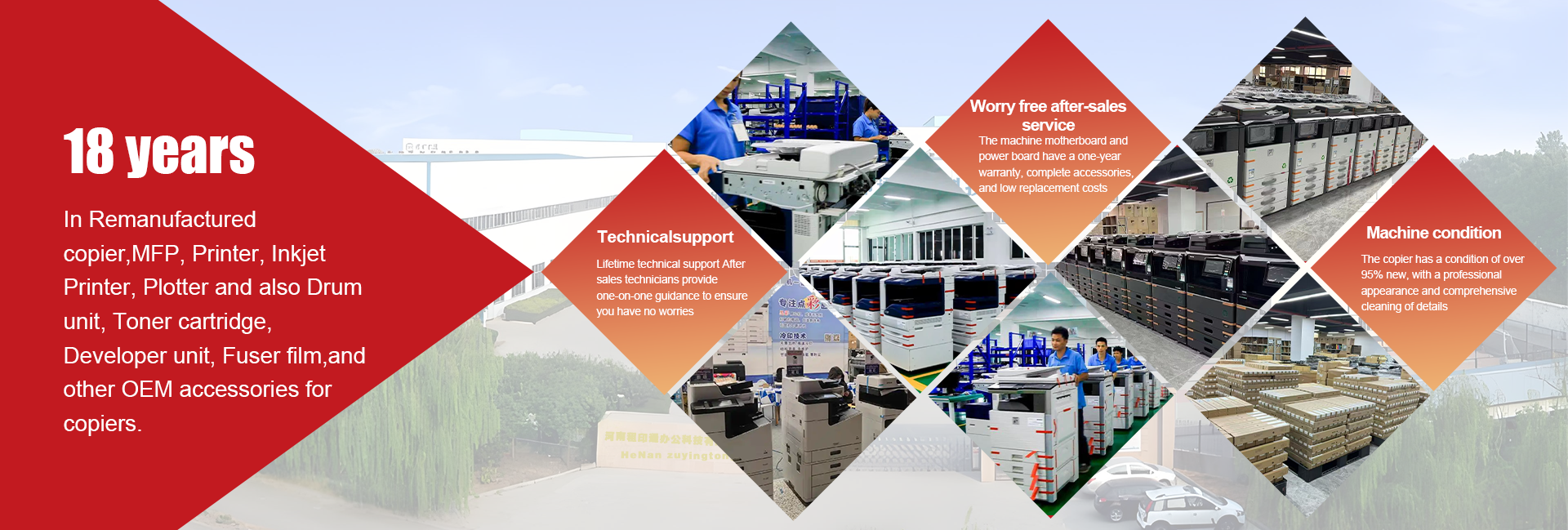 Productos principales:Copiadora reacondicionada, cartucho de tóner, repuestos de copiadora, impresora